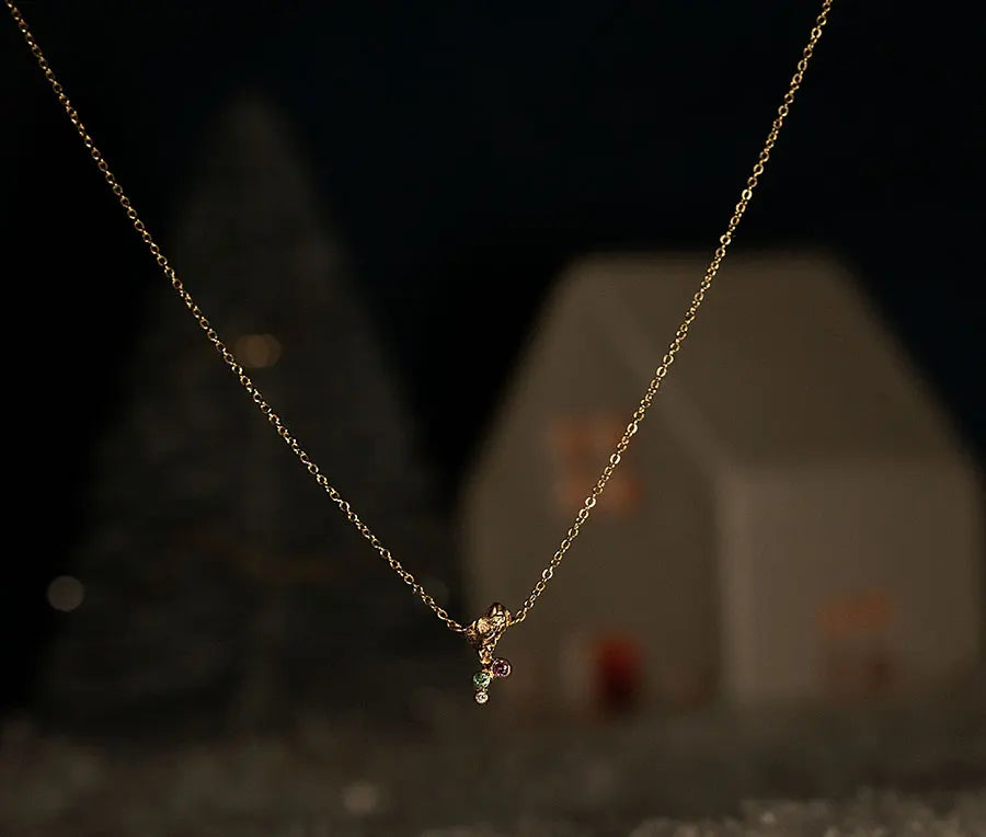A necklace that captures the essence of Christmas, combining the delicacy of gold with the power and beauty of precious stones.