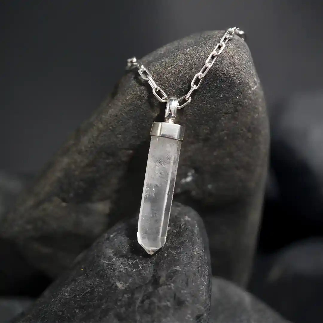 Silver pendant with a Crystal Quartz Point, handcrafted in Peruvian sterling silver.