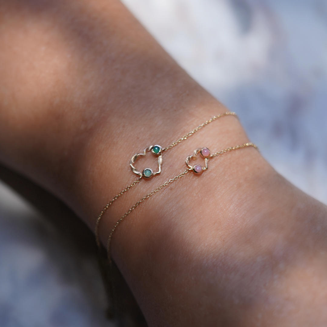 18K Gold Mini Heart Petit Natural Pink Opal Bracelet. Fine jewelry with a minimalist and elegant design. The perfect luxury Valentine's Day gift. Quality guaranteed in every detail.