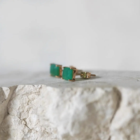 Sterling silver earrings with natural stones, hand-carved in a pyramid shape. Amazonite helps harmonize emotions,...