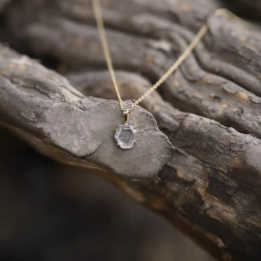 Immerse yourself in the serenity of Aquamarine with this elegant pendant handcrafted in 18k Ethical...