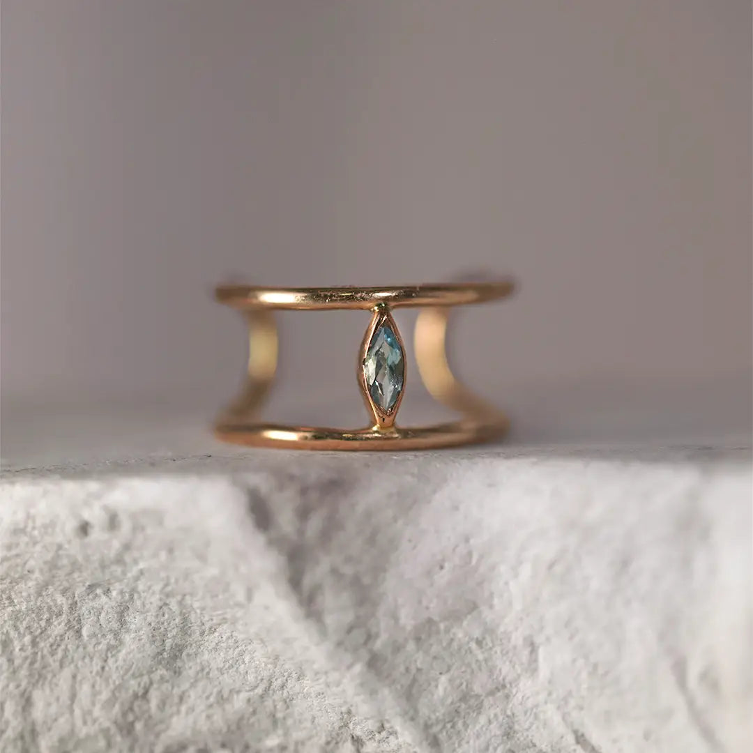 Diseñado para colocarse sin necesidad de perforación, este ear cuff te permite disfrutar de un look moderno y apilado con facilidad. Cada detalle ha sido trabajado a mano por artesanos joyeros, asegurando un engaste impecable del topacio sobre la rica calidez del oro de 18k.