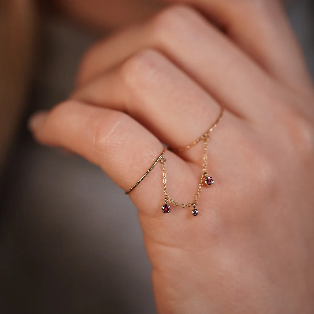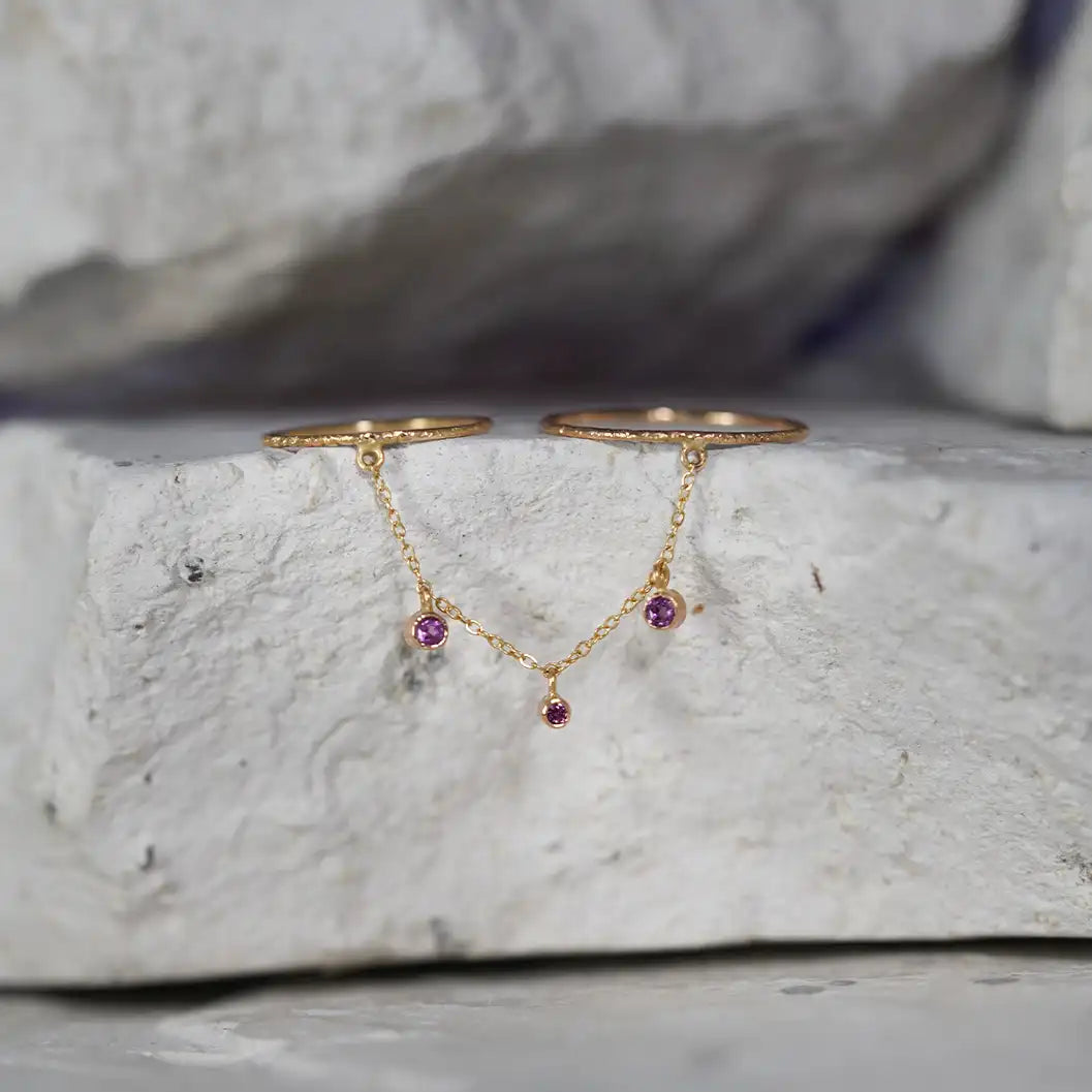 El Anillo Bridge de Oro de 18k trazable es una declaración de estilo y conexión. Este diseño excepcional se compone de dos anillos finos, con texturas delicadas, unidos por una grácil cadena que acentúa el movimiento.